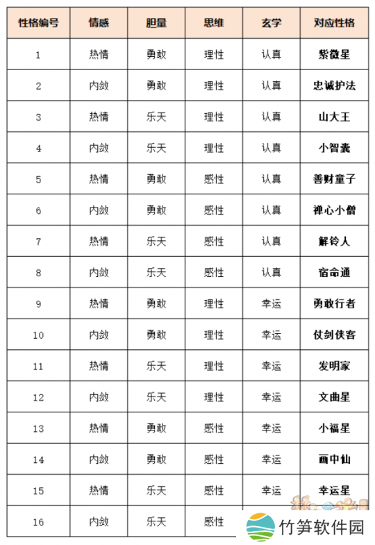 在这里向大家偷偷透露一部分热门标签的对应属性,【熟人钟馗】对应理性,【熟人黑无常】对应勇敢,【鸿运当头】对应幸运,【天覆阵】对应认真。性格标签可分为趣谈、神秘惊喜、寻路找人、魔君护佑、行程管家、五形变换、声音·萌宠、声音·通灵、特殊标签共9个类别,总结了部分类别的标签内容,更多内容有待玩家在游戏中自行发掘。