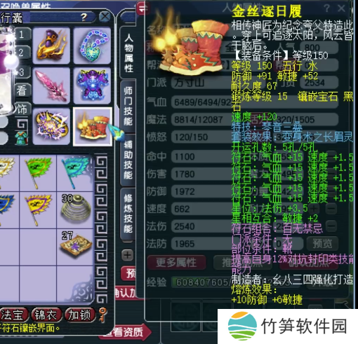 150级琴音三叠鞋子,15锻黑宝石,熔炼后防御+101,敏捷+58。