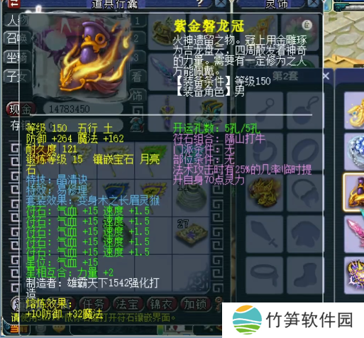 150级晶清诀男头,15锻月亮石,熔炼后防御+274。