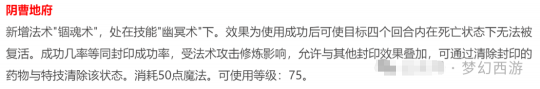 2009年1月13日,地府被授予全新法术锢魂术(4回合)。