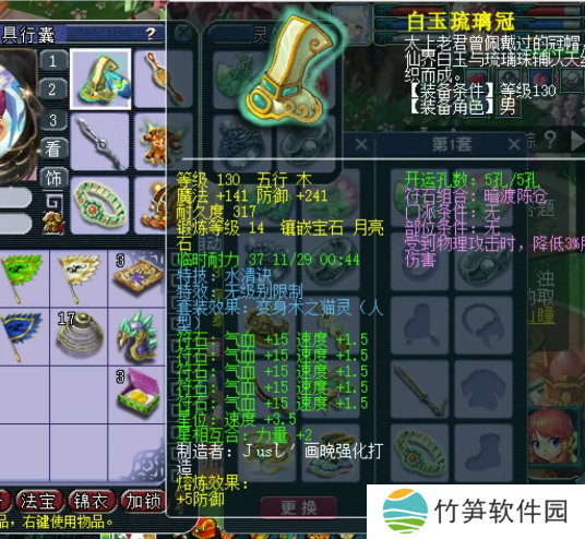 130级无级别水清诀男头,14锻月亮石,熔炼后防御+246。