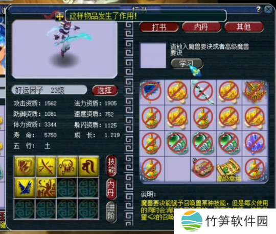 第二本上高级神佑,直接掉飞行。两本高级兽决直接干掉了两个*技能格子,这运气谁不说一个服字?一本书不循环且一个特殊技能没掉,玩家运气爆炸!