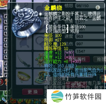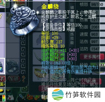 100级戒指,主属性防御,下排2速度1治疗,带8级163。