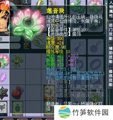 100级佩饰,主属性速度,下排2防御1气血,带7级163。