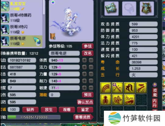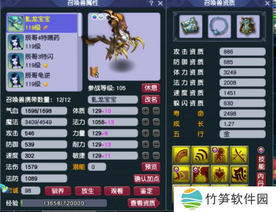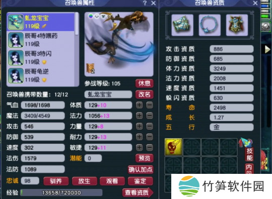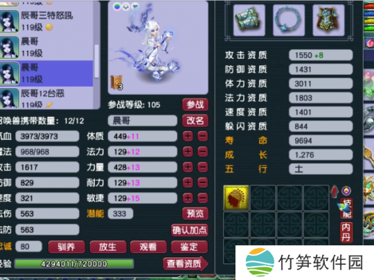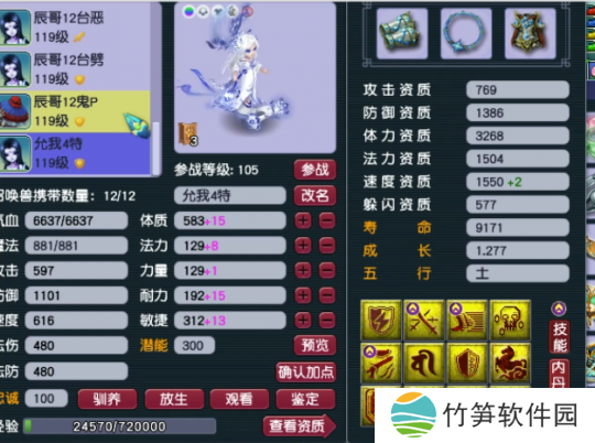 玩家身上多件五孔无级别特技装备加持,多只多特殊技能召唤兽。