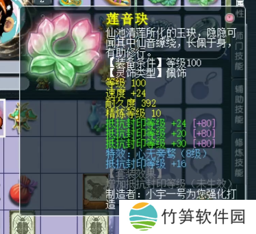 100级佩饰,主属性速度,下排3法防,带8级163。