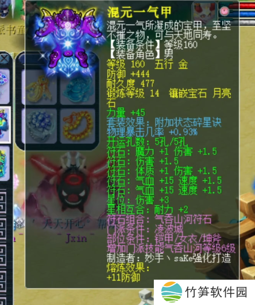 160级男衣,附加物暴几率+0.93%,14锻月亮石,熔炼后防御+455。