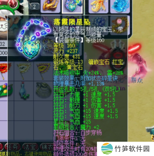 160级项链,13锻吸收宝石,附加物暴几率+1.13%,熔炼后灵力+242。