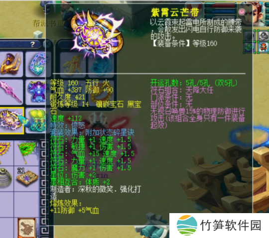 160级愤怒腰带,14锻黑宝石,熔炼后防御+101,气血+392。