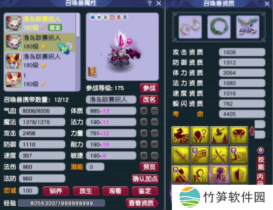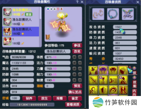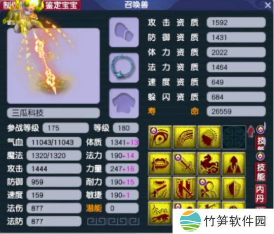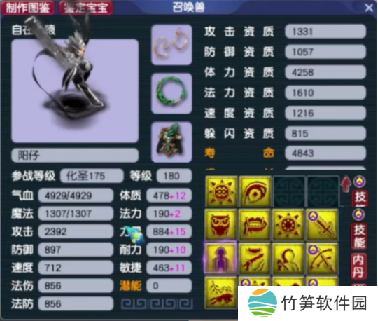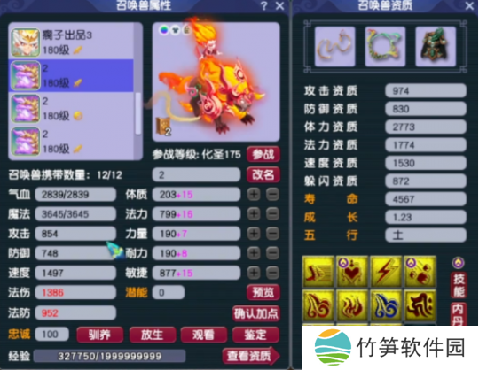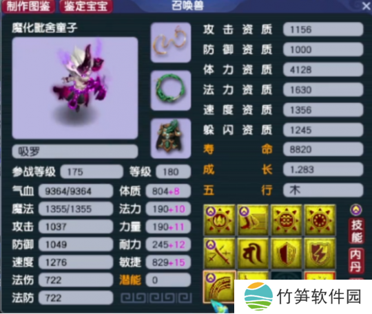 11技能四吸(第四个吸收技能是套装)净台法防电魂闪魔童宝宝。