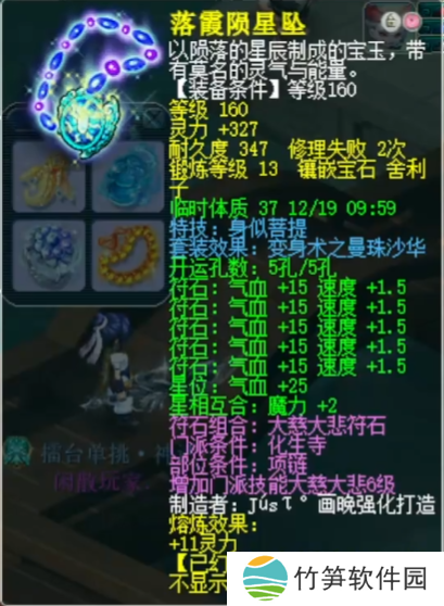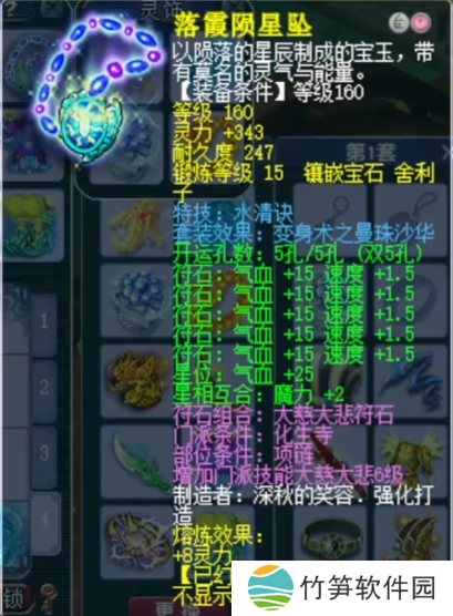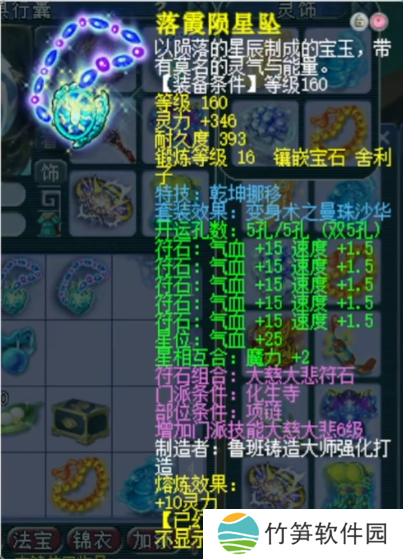 来啦!基础灵力260,附加特技身似菩提的160级项链。