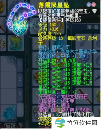基础灵力241,附带1.89%抗封特性,附加特技诅咒之伤的160级项链。