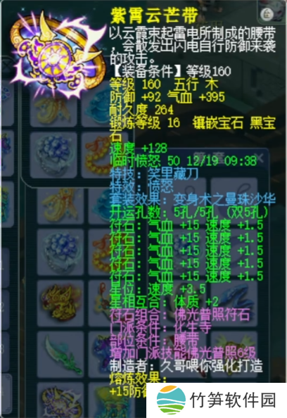 基础防御107,基础气血425,附带特效愤怒,附加特技笑里藏刀的160级腰带。