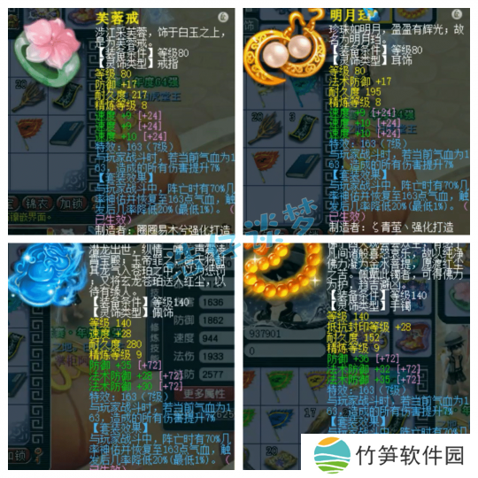 戒指和耳饰下排都是三速度,配饰和手镯下排都是双法防一防御,特效都是7级163。