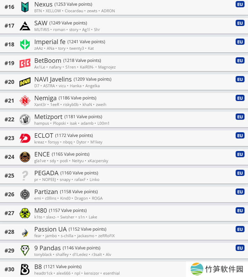 此外NAVI排名更进一步,取代Vitality位列第五。Eternal Fire战队凭借在BLAST 赏金赛S1的出色表现,排名从第12来到第9,已经进入了Top10战队的行列。