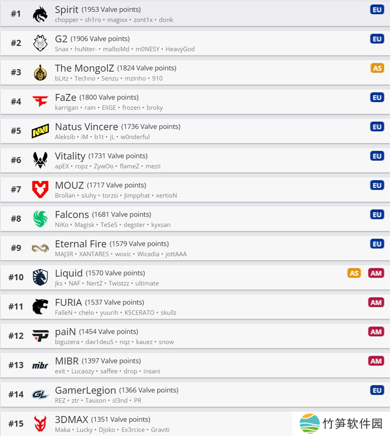 在BLAST 赏金赛S1击败Natus Vincere之后,Spirit战队在HLTV动态排名中已经超过了G2战队位列第一。在先前的排名中,G2战队还位列第一,当时他们领先Spirit 13分。但Spirit在击败EF夺冠之后,已经将和G2的分差扩大到了47分。