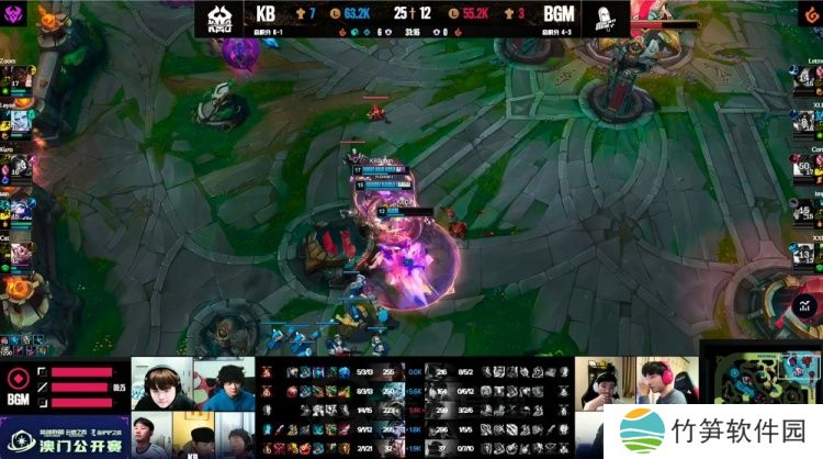 【25:03】Kuro妮蔻闪现大招开团但是KB过于集结,Letme凯南大招电了个爽!KB推掉了中路高地,但是BGM打出2换5团灭KB,但是Leyan佛耶戈直接抢掉了第四条小龙!BGM野辅直接倒下!随后高地团又是Letme凯南和Corn永恩配合再次秒掉了Leyan佛耶戈!这波BGM又击杀了KB三人,再次守住一波!经济差只有6K了!