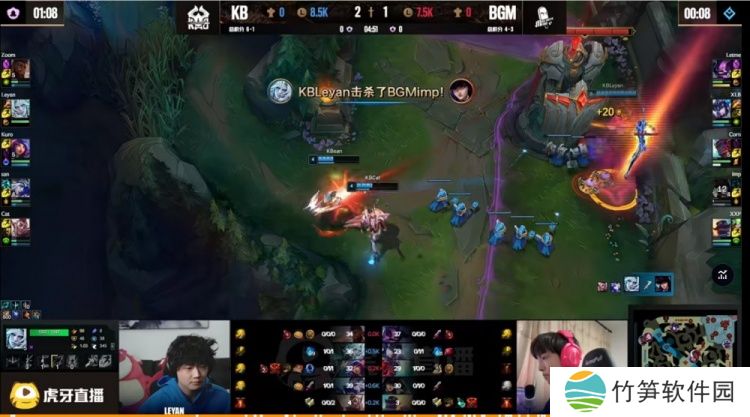 【21:26】Letme凯南在上路吃到san艾希一箭,被Kuro妮蔻跟上控制秒掉!KB开打大龙,xxp布隆大三个但是直接没秒!Corn永恩Q3+R想进场找san艾希,但是被捡到布隆魂的Leyan佛耶戈晕住,也白给了!KB追击留住Imp女警,打了个3+1,一波0换4之后回头再开大龙!XLB猪妹还想进场但是龙已经被Leyan佛耶戈惩掉了!KB追击再次打出0换3!