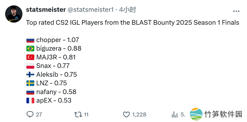 一起看看BLAST 赏金赛S1的数据统计吧。