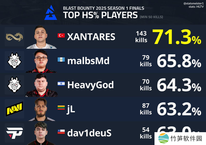 BLAST 赏金赛S1数据统计:爆头机器XANTARES