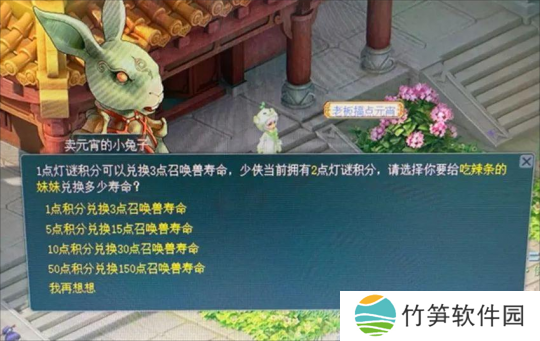 元宵节活动结束了,手里还剩几点灯谜积分怎么办?别急,1点积分可以换3点召唤兽寿命!虽然换不了元宵,但给召唤兽续命也是不错的选择,毕竟寿命也是战斗力的一部分嘛。