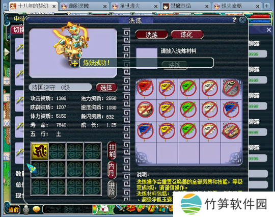 第11个出了一技能,这玩意太难搞了就它吧!升级又没领悟,总是一个月华吃到30级,不知道是好还是坏。