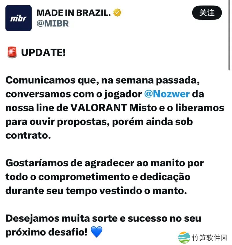 MIBR官方宣布,Nozwer不再担任战队首发选手,并已被允许在合同期内接洽其他机会。Nozwer表示,他将继续留在洛杉矶,并期待未来重返VCT赛场。
