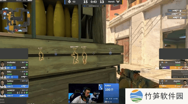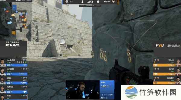 在NiKo的发挥下G2将比分拉开到11-8,这一回合NertZ早早走到了正门,打掉NiKo之后A区门户大开,Heroic艰难的拿下一分,下一回合还是NiKo,一人顶在活门拖延了对手进攻,同时完成三杀,赛点局NiKo和m0NESY双人五杀赢下图二。