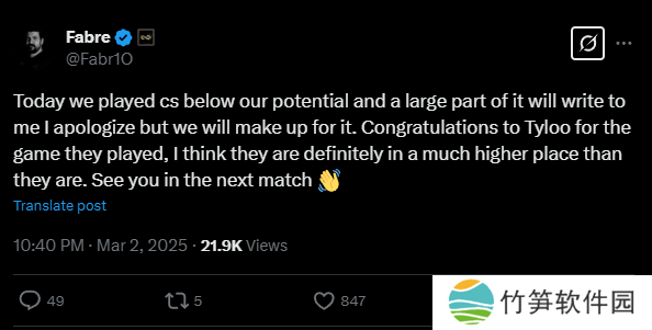 EF教练Fabrse:今天我们的表现没有达到应有的水平,其中很大一部分是我的责任,我很抱歉,但我们会弥补的。祝贺TYLOO打出这样的比赛,我认为他们的实力肯定远远大于目前的排名。下一场比赛见。
