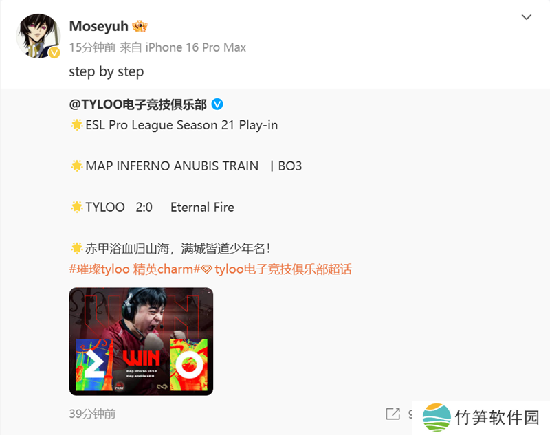 一起看看Eternal Fire和TYLOO选手的赛后动态吧。