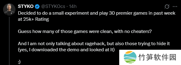 STYKO:打了30把Premier排位,只有4把没有作弊者