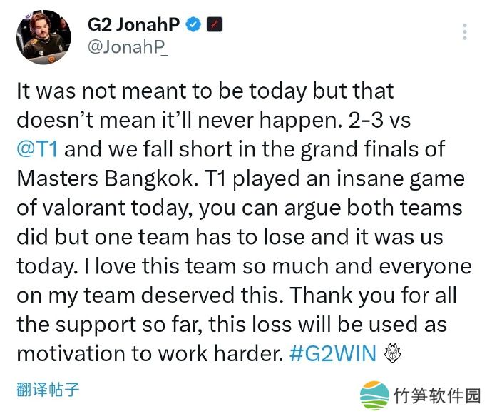 在曼谷大师赛决赛落幕之后,G2的valyn与JonahP选手分别发推表达了遗憾。
