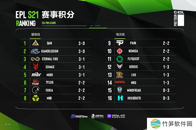 EPL S21入围赛第四日赛果、次日预告和积分榜一览