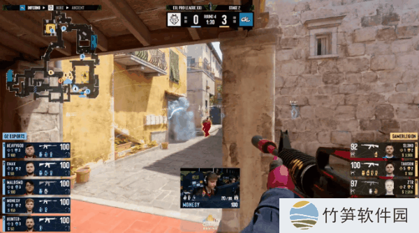 图一为GL选择的Inferno,先作防守方的G2先发制人,A点CT双拉中路拿下双杀,人数劣势的GL摸连接进攻B点,他们成功进点下包,REZ和Tauson在包点绕柱拖足时间,m0NESY将人杀完但没时间拆包,GL拿下手枪局。下一局G2强起没能拿下,GL领先至3-0。第四局,GL想直接爆弹打A,m0NESY在A1接住三人直接瓦解对面进攻阵型,G2拿下第一分。下一局,GL假意控香蕉道进攻B点,实则进攻A区成功骗到G2,他们成功进入A点下包拿下第四分。