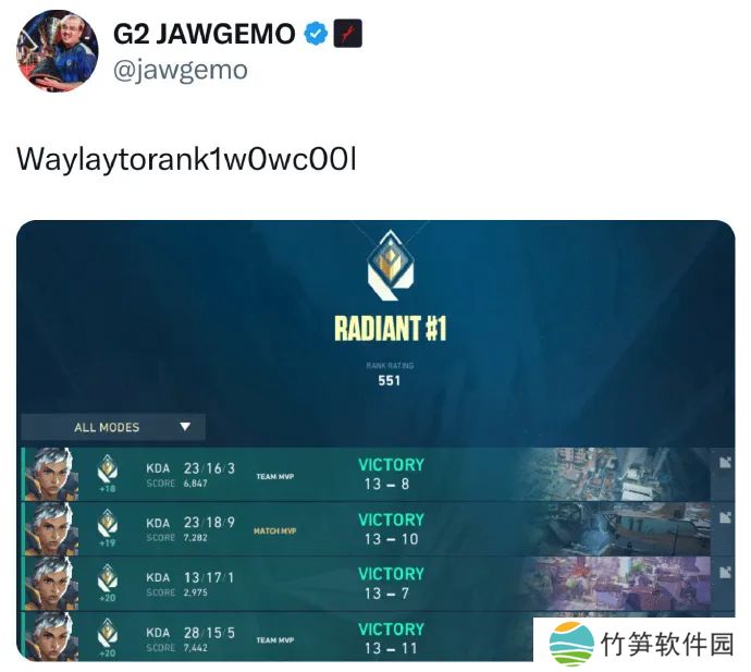 G2选手Jawgemo使用新游戏幻棱登顶新赛季美服第一!