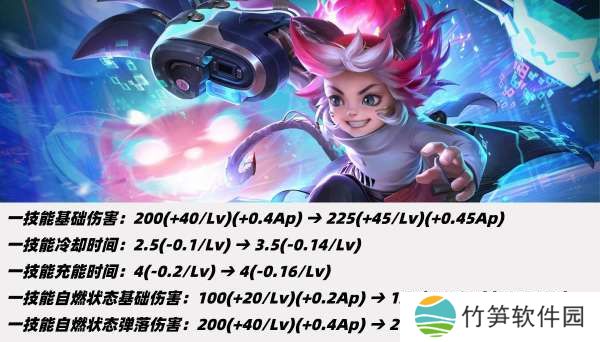 此次上调了一技能25-50点和0.05AP伤害,上调自燃状态一技能75-150点和0.15AP伤害,小幅上调了一技能冷却时间和充能时间。