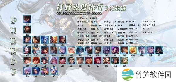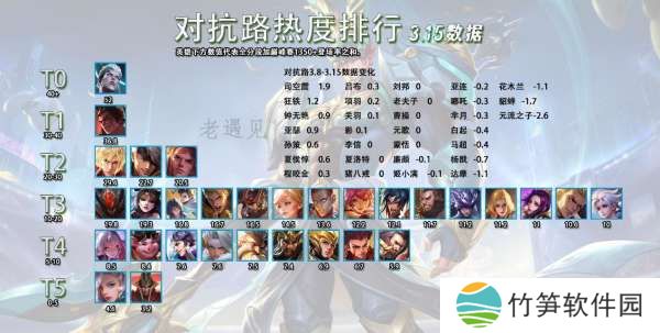 五路热度排行新赛季开始采用全新的形式,每周日一起更新五条路的热度排行,后续的每周都会有详细的数据对比,让大家能够更清楚的了解到版本的变化。