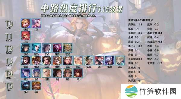 之前的热度排行很多人问为什么只有辅助位没有T0,这些软辅的人气不是非常高吗,特别是瑶,为什么不是T0?热度排行统计的是全分段+巅峰赛1350+的出场率之和,这些软辅本身的ban率就高,所以出场率自然会低一些,其次辅助玩家确实是五个分路里面最少的,这两个原因导致了辅助英雄的出场率普遍不高。等这些出场率高的软辅有高品质皮肤上线的时候,大家就可以看到他们真正的热度了~