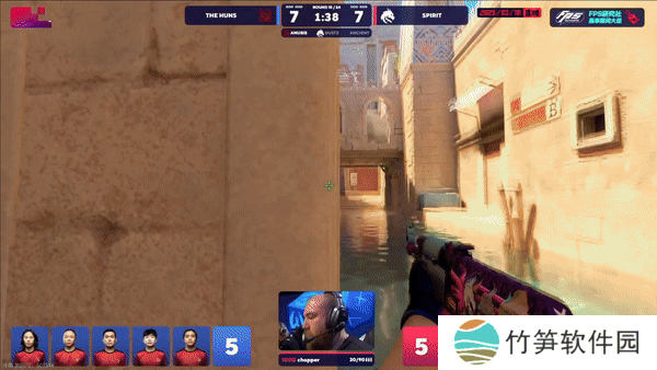 The Huns先做进攻方。手枪局,土匪抱团B外打补枪冲进包点放下雷包,剩余magixx和zont1x二回三难以操作,yAmi三杀,手枪局The Huns拿下。