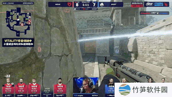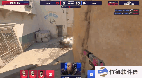 来到下半场,MOUZ作进攻方rush A,成功下包后,xertioN先杀donk,后续队友补枪到位,在仅掉一人的情况下拿下手枪局。