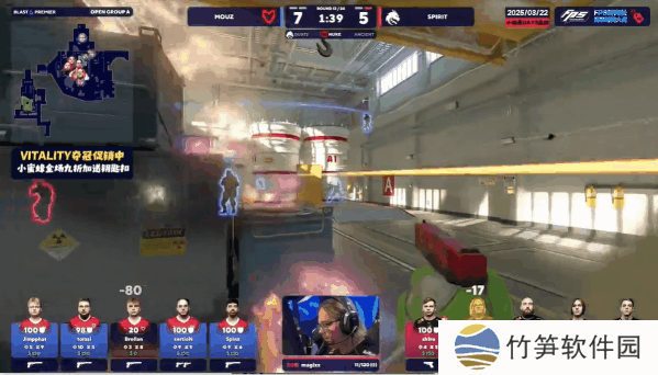 易边再战,Spirit作进攻方。MOUZ四A防守,donk快速推进先拿双杀,magixx配合zont1x再击杀剩余队员,手枪局绿龙拿下。