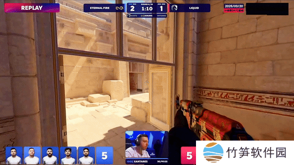 Liquid先做进攻方。手枪局,土匪夹击B区,Wicadia和XANTARES的双枪顶在近点双人四杀,手枪局EF拿下。