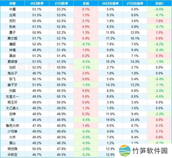 以上就是辅助英雄的数据变化情况,相对来说不算很大,对此你怎么看呢?