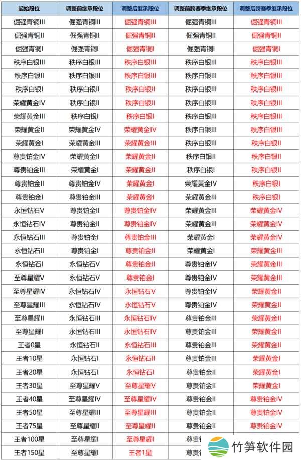 段位继承在S39赛季再次迎来调整,150星及以上将从原来的星耀1继承到王者1星,铂金3到王者19星,降低一个继承段位,其他段位继承不变,这样调整后低端局上分难度增加,高端局上分难度降低。