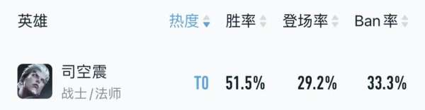 上赛季司空震加强了一三技能护盾已经彻底崛起,新赛季还诞生了一套“逐风反甲流”玩法,巅峰赛51.5%胜率+62.5%禁选率,已经是对抗路独一档的存在。