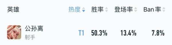 公孙离作为上手难度最高的射手英雄,本赛季巅峰赛50.3%胜率+21.2%禁选率不算离谱,但是小国标上榜战力常年领跑发育路。