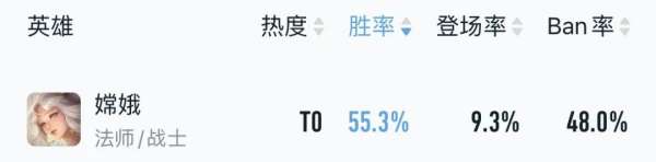 上赛季嫦娥改版后就已经完全转型中路,巅峰赛55.3%胜率+57.3%禁选率断档领跑中路,本周小幅削弱对嫦娥的影响并不大。