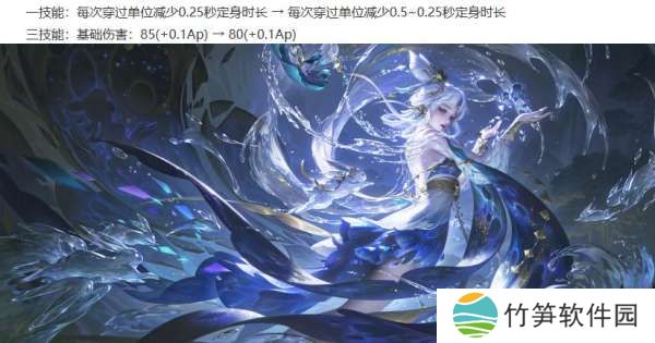 嫦娥削弱:1技能在前中期穿过单位后的控制时间缩短,大招的伤害小幅降低。