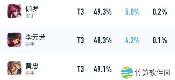 以上则是伽罗,李元芳和黄忠目前的巅峰赛数据,虽然胜率都有0.5%左右的提升,但出场率依旧低迷,还是排在垫底的位置。