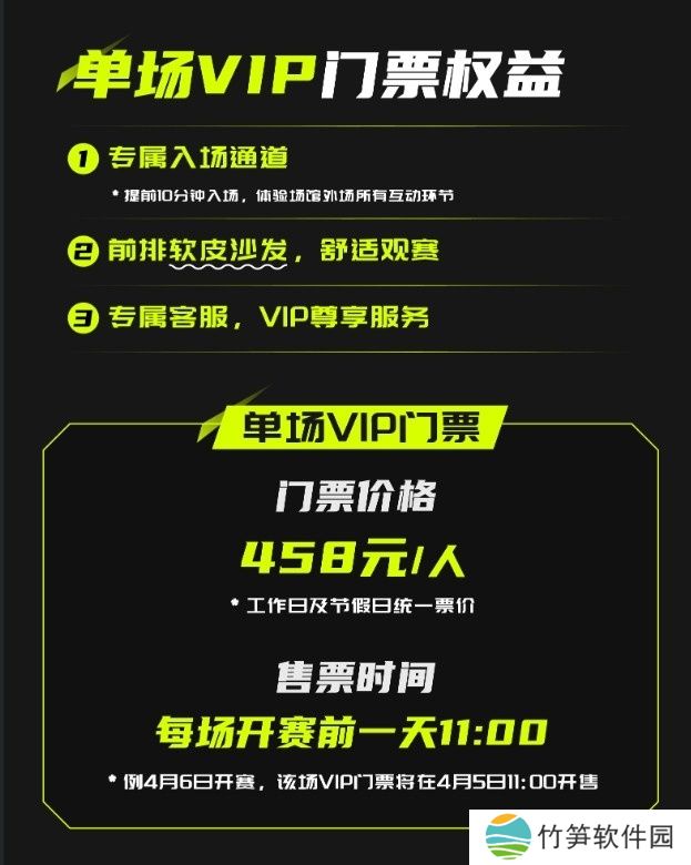 1️⃣单场VIP门票:每场比赛前一天11:00